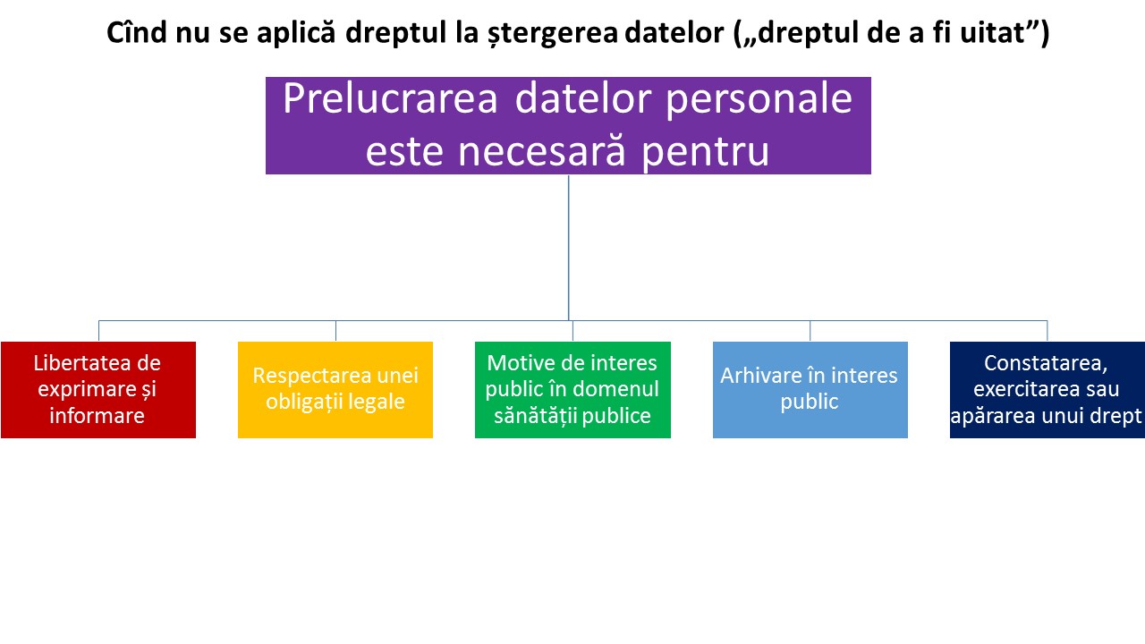 Pentru a se consolida „dreptul de a fi uitat” în mediul online, dreptul de ştergere ar trebui să fie extins astfel încât un operator care a făcut publice date cu caracter personal ar trebui să aibă obligaţia de a informa operatorii care prelucrează respectivele date cu caracter personal să şteargă orice linkuri către datele respective sau copii sau reproduceri ale acestora.