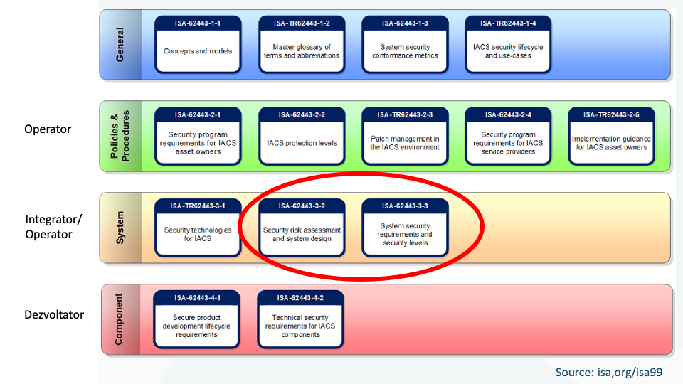 Partea 3-2 descrie cerințele pentru abordarea riscurilor de securitate cibernetică într-un IACS/SCADA dar nu specifică și metodologia exactă care trebuie utilizată. Metodologia utilizată trebuie să fie stabilită de către proprietarul activelor (Operator) și ar trebui să fie în concordanță cu metodologia generală de evaluare a riscurilor a organizației.